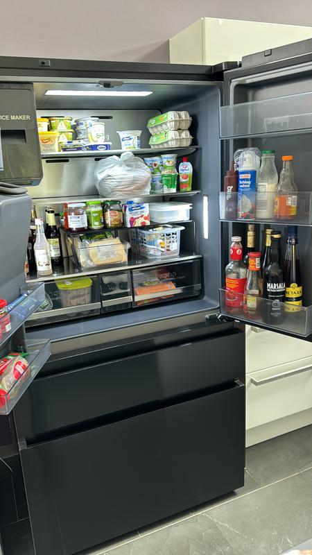 Toller Kühlschrank, leider mit empfindlicher Oberfläche. Man sieht sofort jeden Fingerabdruck. Die obere Schublade ist etwas instabil, was dem gesamten aber keinen Abbruch gibt. Er ist ein wahres Raumwunder. Die Einstellungen sind intuitiv und selbsterklärend. Wir lieben ihn!
